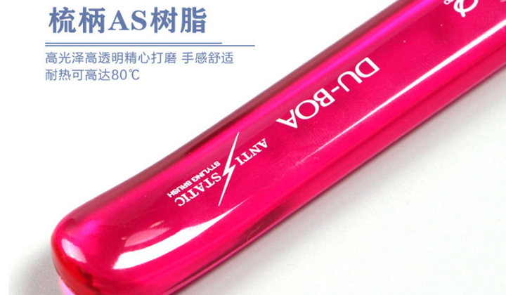 3、梳柄AS樹脂,高光澤高透明精心打磨,手感舒適,耐熱可高達(dá)80℃。